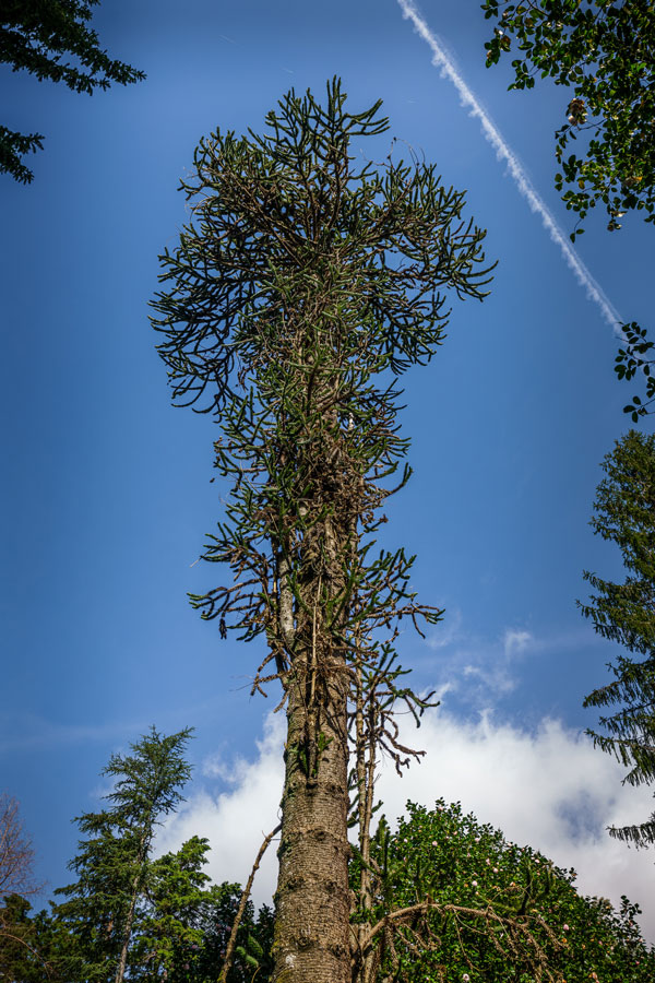 Contamos con una gran araucaria de aproximadamente 25 metros de altura. Es el mayor ejemplar de Galicia y fue candidato a Árbol Europeo del Año en 2019. Se alza en pleno centro del parque botánico, a medio camino entre el estanque y la fuente de la Marquesa.